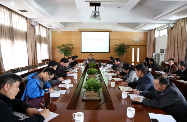 浙农林大新闻网讯 3月17日上午,学校在行政楼第一会议室召开博士授权点建设专题研讨会,会议由校长周国模主持,副校长张立钦,科技处、人事处、计财处、研究生处负责人,涉及研究生教育学院负责人及“竹资源与高效利用”博士项目等相关学科负责人参加会议。