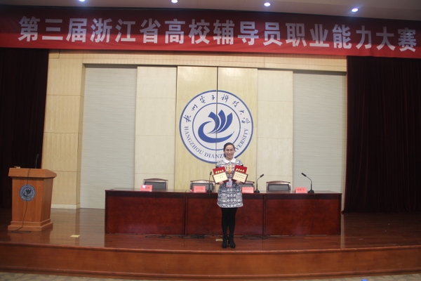3月26日,由浙江省教育厅主办,省高校辅导员工作研究会、浙江工业大学、杭州电子科技大学承办的第三届浙江省高校辅导员职业能力大赛决赛暨颁奖典礼在杭州电子科技大学举行。我校青年教师应莺荣获大赛一等奖(第一名)和最佳口才奖。
