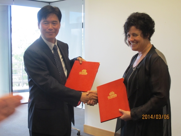 在澳大利亚,鲍滨福一行来到了悉尼大学农学院和土壤标本实验室、格里菲斯大学环境未来研究所,默多克大学兽医生命科学学院和中澳小麦改良联合中心,了解了实验室建设及公用房管理的相关政策,看望了我校兼职教授徐志宏,及在中澳小麦改良联合中心访学的我校学生吴莎莎。访问期间,鲍滨福代表学校分别同格里菲斯大学、默多克大学等进行了多次洽谈交流,就共同感兴趣的教学和科研合作领域进行详细磋商,达成了诸多意向和共识,签署了校际合作协议书。