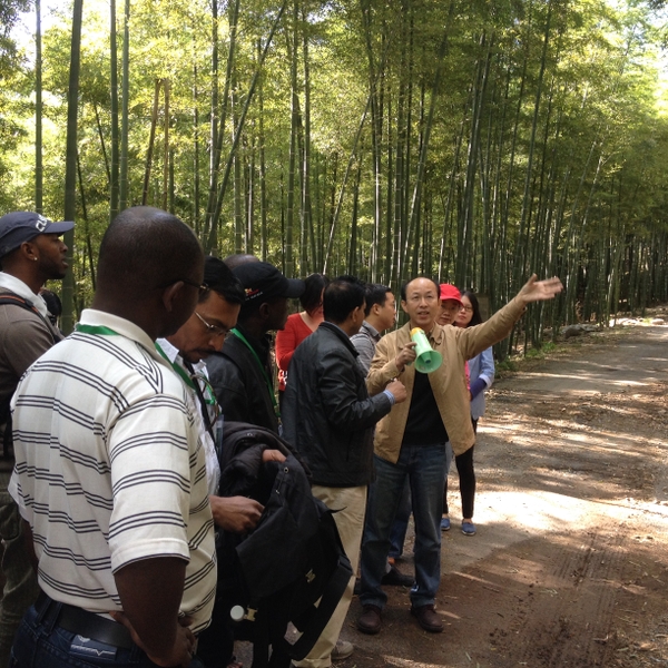 我校非洲农林研究院院长楼一平博士在北京以“竹林可持续经营以及在缓解和适应气候变化中的作用”为题,对学员开展了竹林生态经营的理论培训。同时,在学员们在安吉参观我校总面积为2000亩的“毛竹林固碳减排综合技术示范”实验区时,楼一平为学员们讲解了毛竹林可持续经营增汇的技术试验,学员们对毛竹碳汇林营造与竹林碳汇经营增汇技术表现了极大兴趣,结合各自的国情认真学习,并展开了热烈讨论。