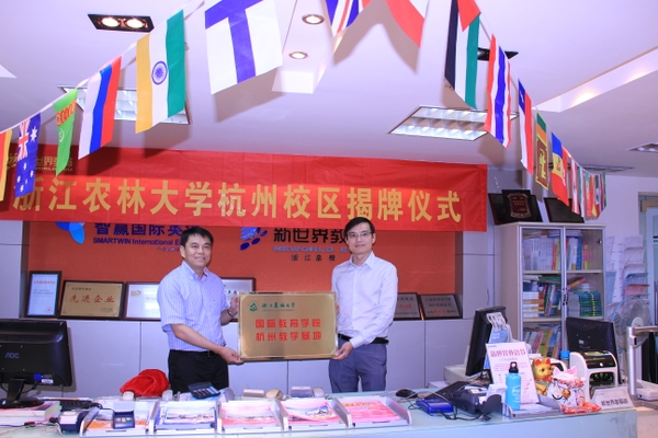 浙农林大新闻网讯 7月8日下午,浙江农林大学国际教育学院杭州教学基地揭牌仪式隆重举行。副校长张立钦,新世界教育集团副总裁Frank 朱、部门总监Ivy张,以及杭州新世界进修学校负责人,我校国际处、国际学院相关负责人等出席了揭牌仪式。