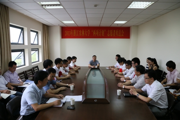 浙农林大新闻网讯 6月28日上午,我校2013年“两项计划”志愿者欢送会在校团委会议室举行。校党委副书记余杰,以及宣传部、学工部、研工部、校团委负责人,各学院相关负责人以及即将启程的志愿者参加了欢送会。会议由校团委主持工作副书记倪建均主持。