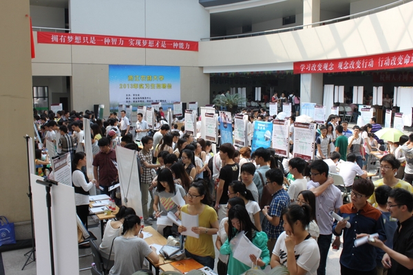 浙农林大新闻网讯 5月25日,由学生处主办,就业指导服务中心承办,大学生就业实践社、大学生创业社、校广播电台协办的“浙江农林大学2013年实习生招聘会”在东湖校区学生活动中心顺利举行。本次招聘会吸引了110余家企业前来招贤纳才,共提供就业岗位1700余个。