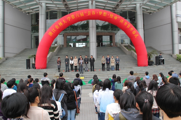 图书馆馆长王长金教授在开幕式上致辞,他说,读书是中华民族几千年流传不息的优良传统,开展全校性的“读书节”活动,是进一步贯彻落实学校“生态性创业型大学”战略目标的重要举措,倡导全校师生树立终身学习理念,营造更加和谐文明的校园学习环境。他强调开卷有益的重要性,希望广大同学能以“读书节”为契机,养成爱读书的良好习惯,使读书成为我们生活的主旋律。