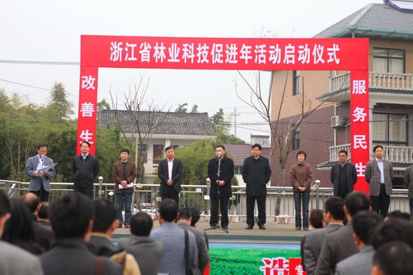 浙农林大新闻网讯 3月20日,全省林业科技促进年活动启动仪式在德清县举行。省林业厅、省科技厅、中国林科院亚林所和省林业厅机关有关处室、直属有关单位领导和专家,湖州市及所辖县(市、区)林业局局长、推广站长,林业科技进村入企专家服务队代表,湖州市、德清县有关领导及各乡镇(街道)分管领导、林技员,林业大户和企业代表等100余人,我校副校长金佩华,以及竹领域部分专家、社会合作处有关人员参加了启动仪式。