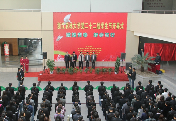 浙江农林大学第二十二届学生节系列活动以“激扬青春 好学笃行”为主题,共分“务实•踏实进取篇”、“守信•求是存真篇”、“崇学•经世致用篇”、“向善•品学双馨篇” 四大篇章。学生节期间,学风建设月、文明寝室建设系列活动、“非常新生”评选大赛、“新生杯”篮球赛、创业广场系列活动等65个活动将陆续开展。