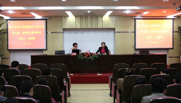 浙农林大新闻网讯 10月24日上午,我校第九期辅导员工作沙龙在图书馆第二报告厅举行,本期沙龙主题为“高校学生事务管理”。学工部负责人、各学院党委(总支、直支)副书记、辅导员、学工部全体人员100余人参加了沙龙。