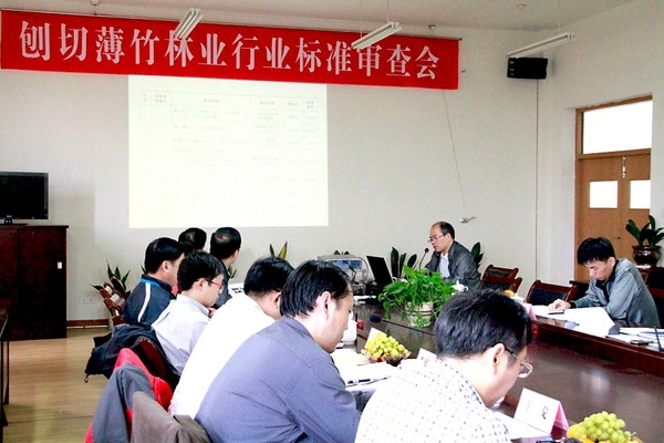 国家林业局国际竹藤中心、国家林业局科技司、浙江省林业科学研究院、浙江省林产品质量检测站、浙江竹产业协会以等竹木加工行业内的专家和该技术相关的企业参加了审定会。专家组细致严谨的开展了纸质材料审定,讨论质疑、修改完善,最后该标准顺利通过审定。