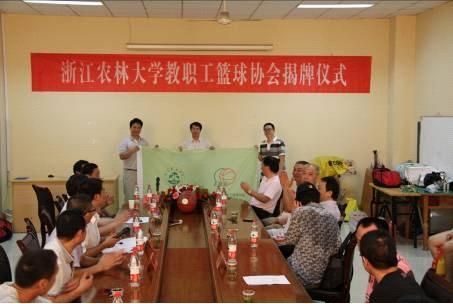 揭牌仪式上,方伟、金佩华为浙江农林大学教职工篮球协会揭牌。协会秘书长宣读了校工会对教职工篮球协会组织机构的批复文件。会后,与会领导和协会会员代表合影留念,并进行了教授队和青年队的篮球友谊赛。