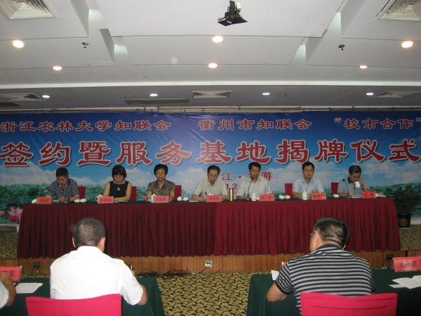 浙农林大新闻网讯 7月21日,校知联会与衢州市知联会“校市合作”签约暨服务基地揭牌仪式在衢州市龙游举行。衢州市政协副主席、市委统战部长马东泉,我校党委副书记方伟,衢州市、龙游县党委统战部、知联会负责人,龙游县有关部门负责人,我校党委统战部、校知联会主要成员及专家服务团成员出席了活动仪式。