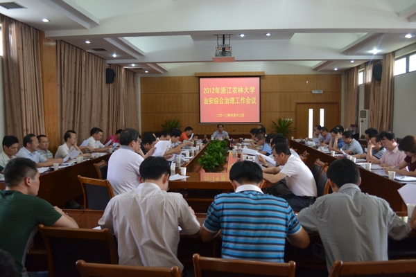 浙农林大新闻网讯 6月13日下午,学校在行政楼第一会议室召开治安综合治理工作会议,校长周国模出席会议并讲话。校党委副书记余杰、副校长王自勇、临安市政法委副书记程炳贵,以及各学院(部)党委(总支)书记,机关各职能部门、图书馆负责人,后勤集团总支书记参加了会议。会议由余杰主持。