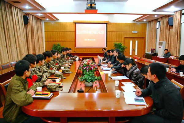 浙农林大新闻网讯 12月8日上午,学校在行政楼第一会议室举行2011年在校大学生入伍欢送会,校党委委员、纪委书记汪志银出席并讲话。校宣传部,学工部,人武部及相关学院党委(总支)负责人、辅导员及入伍同学参加了欢送会。会议由校人武部长马小辉主持。