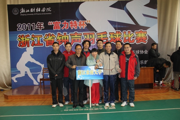 浙农林大新闻网讯 12月10日, 2011年“富力特杯”浙江省高校钟声羽毛球比赛在浙江财经学院举行,全省共有18所高校教工代表队参赛。副校长王自勇作为我校代表队成员参加比赛,校党委委员、校工会主席汪士华兼任我校教工羽毛球队领队。