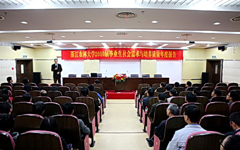 浙农林大新闻网讯 11月9日,麦可思公司首席专家王伯庆应邀到我校作“浙江农林大学2010届毕业生社会需求与培养质量报告”的解读。副校长张立钦,各部门负责人,各学院(部)党政领导、学科负责人、专业负责人、教师代表以及教务处、学生处全体老师参加了报告会。报告会由教务处处长邵千钧主持。
