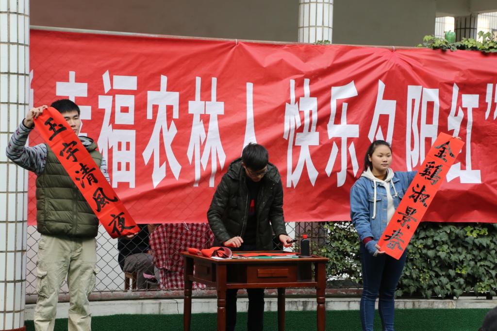 我校义工协会成员还现场书写福字和春联,并与老同志亲切交流。整场联欢会欢笑声不断,大家济济一堂,其乐融融。