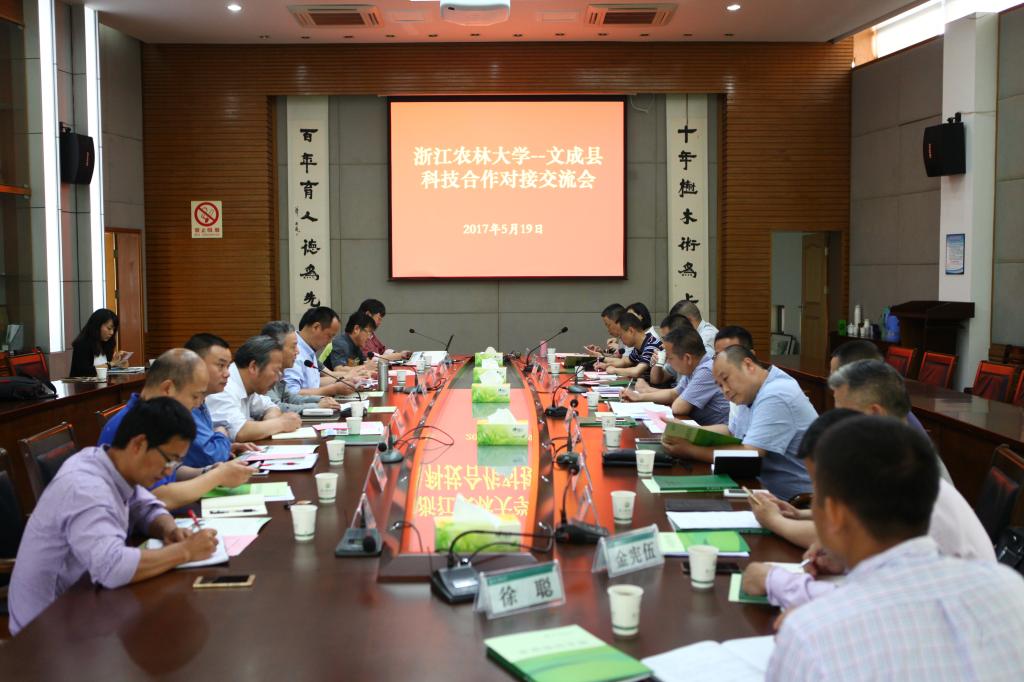5月19日,文成县副县长李标带领县科技局、科协、旅委、林业局、环保局等有关部门来我校对接校县合作事宜,副校长王自勇出席对接会,社会合作处、林生院、环资学院、信息学院、园林设计院的负责人及我校派驻文成的科技特派员参加会议。