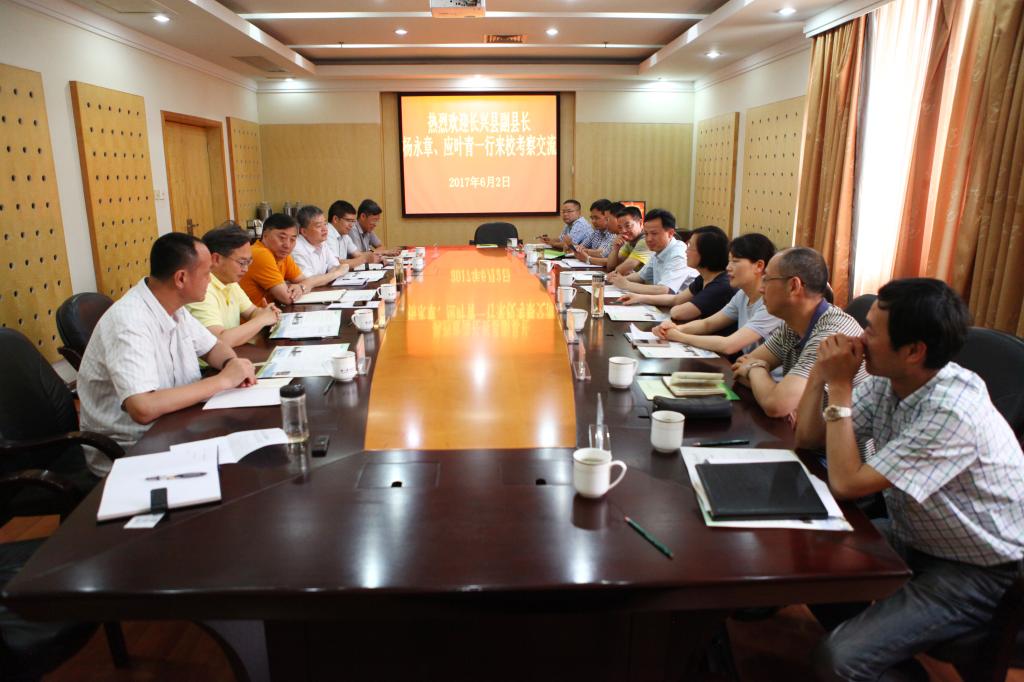6月2日,长兴县副县长杨永章带领县农业局、林业局、国土资源局等有关部门负责人来校洽谈校县合作事宜,副校长金佩华出席座谈会,校办、社会合作处、农学院、林生院负责人参加会议。