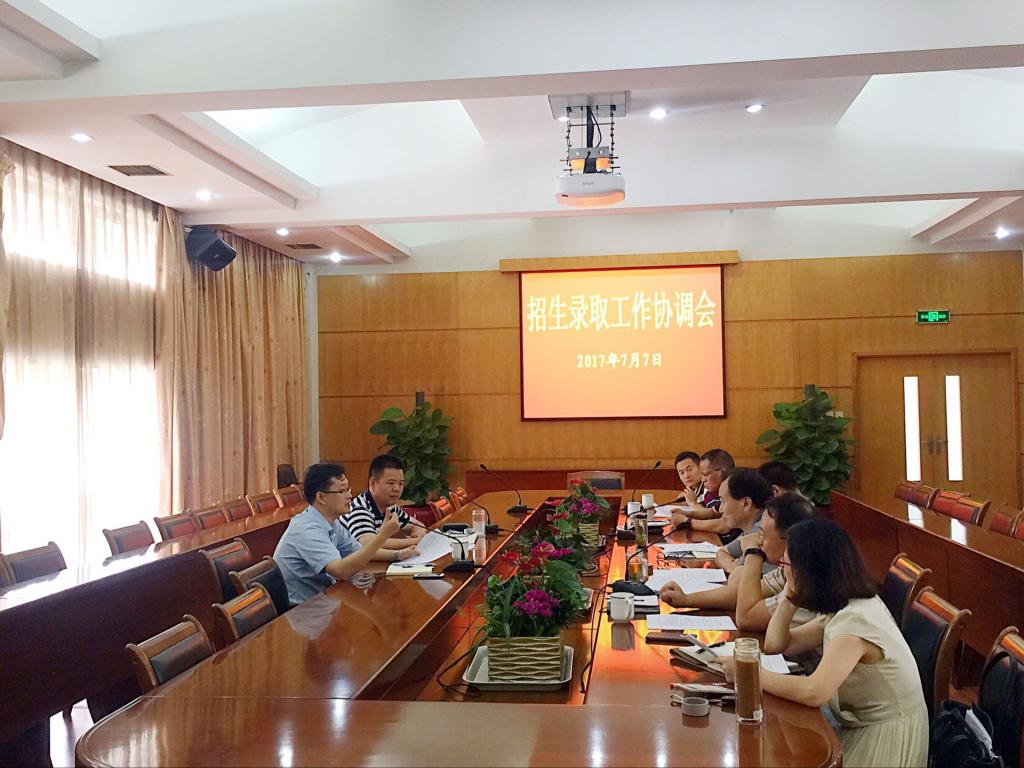 7月7日,学校召开2017年招生录取工作协调会,会议通报分析了学校2017年本科招生录取工作筹备与开展情况,并部署招生录取工作。校党委副书记史永安主持会议。校本科招生领导小组成员及相关单位负责人参加会议。