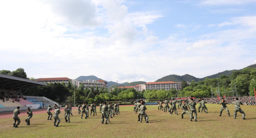 沈月琴对全体官兵、学生进行了检阅。各营学生进行了分列式汇报表演。汇演中,全体受训学生以高昂的士气、响亮的口号、雄壮的步伐、精准的动作,接受了检阅,充分展示出了此次军训的成果。随后,女生擒敌拳分队为现场带来精彩的表演,全体教官表演了擒敌拳及队列动作,获得现场热烈的掌声。
