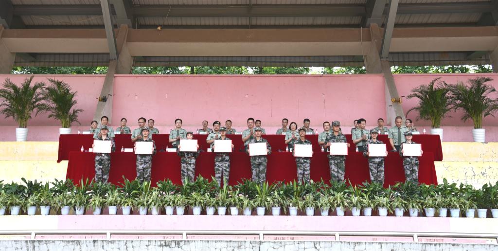 大会对2016级学生军训工作进行了表彰,相关领导为先进集体及个人、内务标兵寝室颁奖。农学动科营4排、林生营12排、环资营13排、工程营19排、园林营25排、理学信息营32排、文化营38排、经管营46排、外语法政营54排等荣获军训先进集体荣誉。