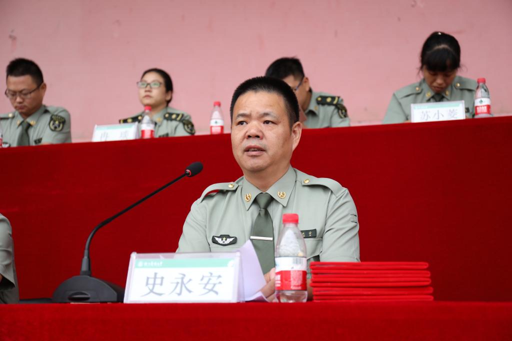 史永安代表学校党委、行政向中国人民武装警察部队士官学校的全体承训教官表示衷心感谢,向圆满完成各项训练任务的同学表示热烈祝贺。史永安指出,承训教官政治信念坚定、组织纪律严明、军事素质过硬,将武警战士的好品质毫无保留地传授给学生,充分展示了人民子弟兵文明之师、威武之师的良好形象。军训是同学们来校参加的第一次教学活动,史永安向全体同学提出三点希望:一是锤炼坚韧精神,胸有家国情怀。要有坚韧不拔的精神品质和坚定的理想信念,把家国放在心中,把责任扛在肩上,把知识装在囊中,用脚踏实地和坚韧勤勉去践行当代青年应有的使命担当。二是锤炼三干品质,端正为学态度。要认真体会学校精神,秉持好传承好三干品质,并发扬光大,应用到大学生活的为学为人为事中。三是锤炼自律意识,珍视同窗情谊。同学们在今后的学习生活中要高标准严要求,在目标和理想的道路上不跑偏不停顿,刻苦学习,积极进取,用勤奋和努力创造更美好的明天。