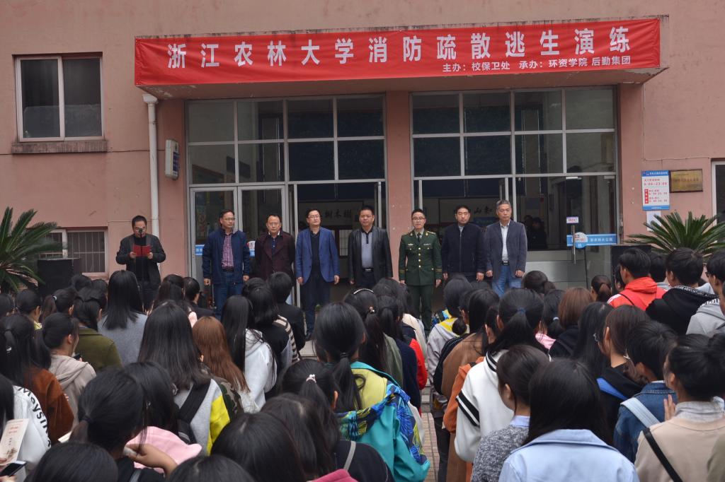 本次消防疏散逃生演练由保卫处、环资学院、后勤集团联合临安市消防大队开展。临安市消防官兵、浙江农林大学微型消防站消防队员、后勤宿管员、义务消防员、师生代表共计420余人参加了本次活动。