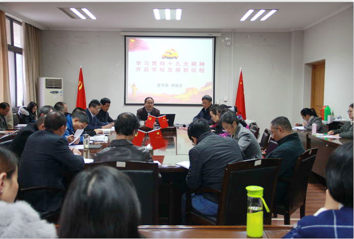 为贯彻落实党的十九大精神,11月30日下午,校党委委员、宣传部长胡祖吉为理学院全体教职工宣讲十九大精神。