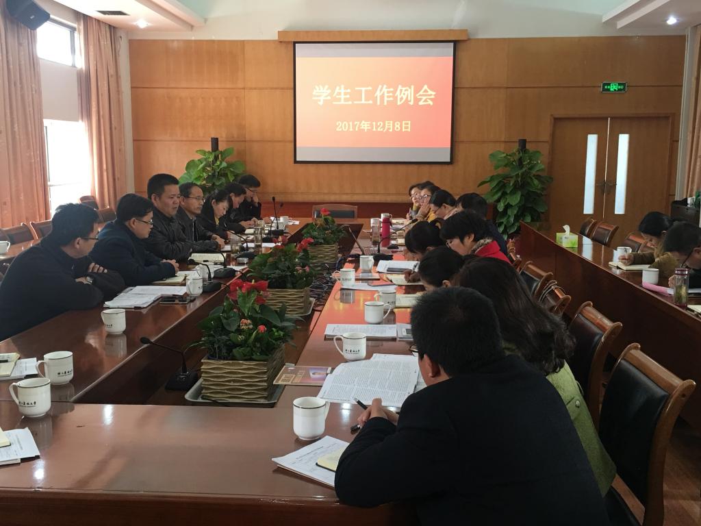 12月8日,学校召开学生工作例会,研讨新时期大学生理想信仰教育与价值观塑造问题及做好2018年招生就业工作,校党委副书记史永安主持会议。