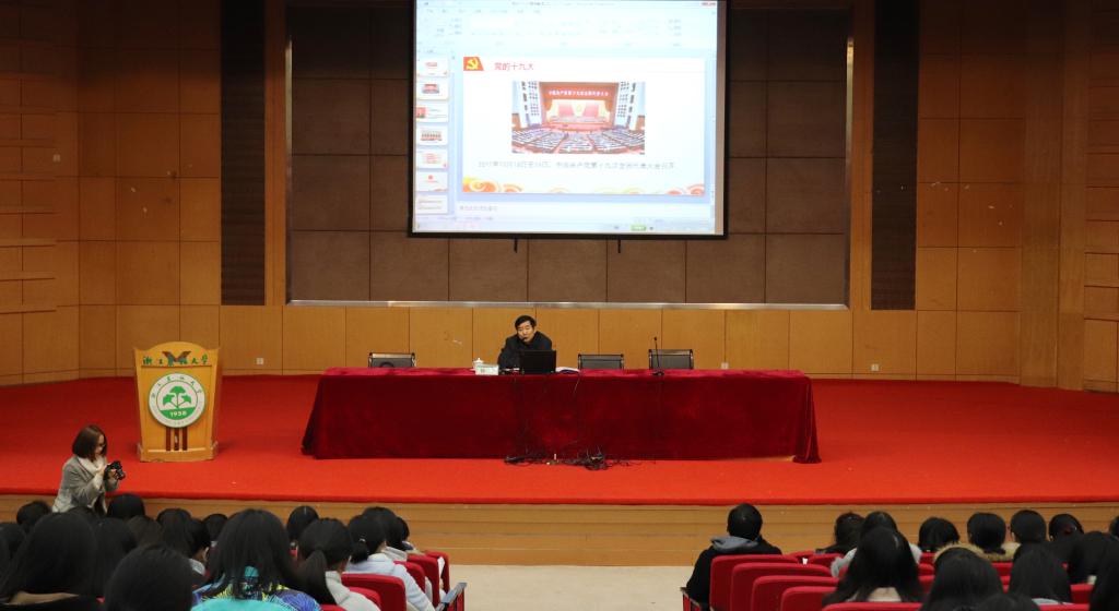 钟平指出,十九大报告有着特殊的历史背景,特别是报告中含有许多浙江元素,全体师生要深入了解,认真学习贯彻十九大精神,坚定理想信念,强化责任使命担当,为实现中华民族伟大复兴的中国梦而努力奋斗。