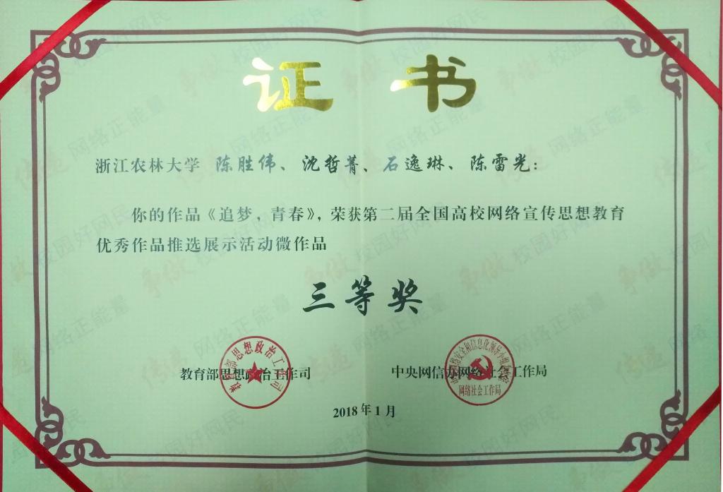 近日,由教育部思政司、中央网信办网络社会工作局联合开展的“全国高校网络宣传思想教育优秀作品推选展示活动”获奖作品揭晓,我校党委宣传部指导、学生通讯社摄制的青春系列微电影之《追梦,青春》荣获微作品三等奖。