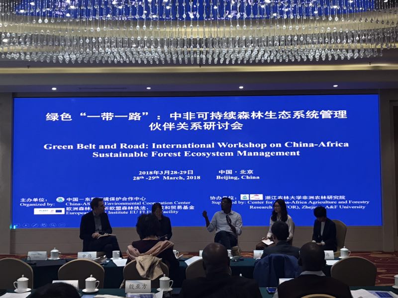 3月28日至29日,我校非洲农林研究院联合中国-东盟环境保护合作中心,欧洲森林研究所,欧盟森林执法、施政与贸易基金中国项目办公室,在北京举办了“绿色一带一路:中非可持续森林生态系统管理伙伴关系国际研讨会”。