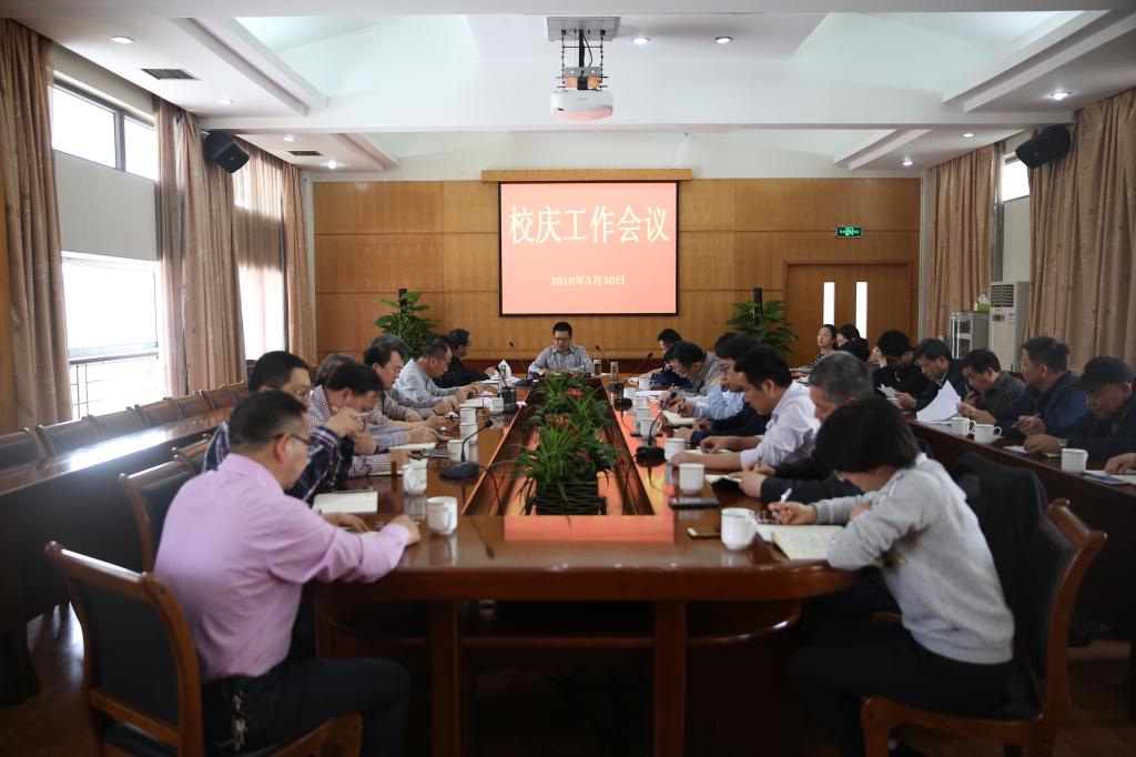 3月30日下午,学校召开校庆工作会议,总结前一阶段校庆筹备工作,对下一阶段各项筹备任务进行再部署、再落实。会议由校党委副书记、校庆办主任史永安主持,校庆办副主任、各校庆筹备工作组负责人、各学院校庆工作负责人及校庆办全体成员参加会议。