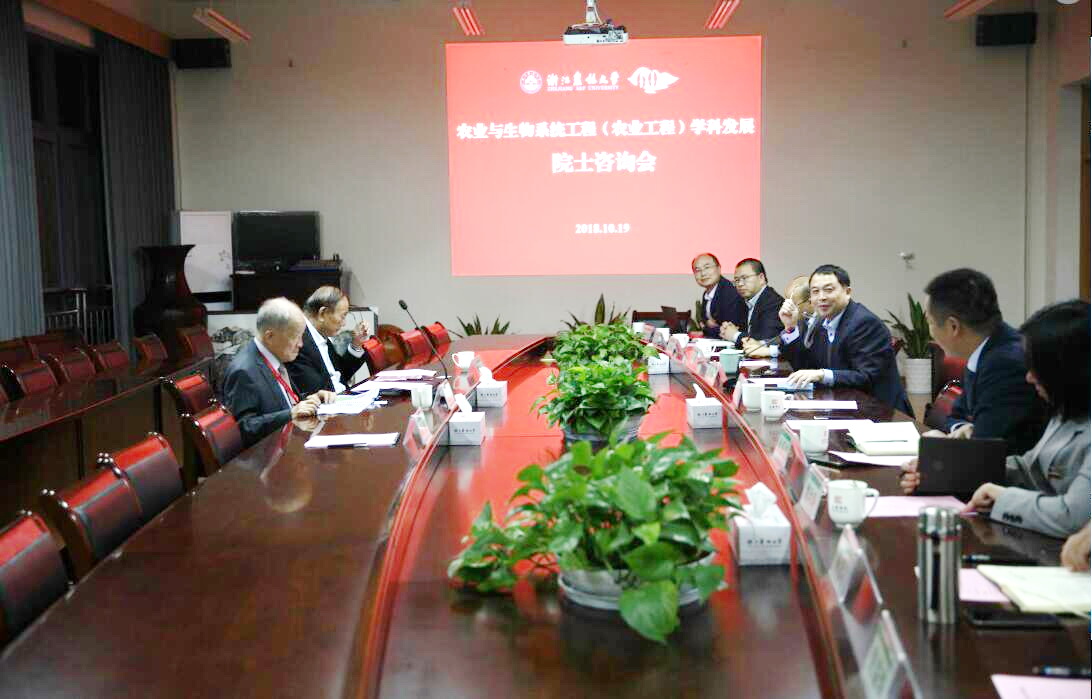 两位院士认真听取汇报并进行了热烈讨论。汪懋华院士从国际农业与生物系统学科发展的历程,国家学科建设的战略、乡村振兴对农业工程学科的要求和浙江农林大学的发展实情出发,提出我校农业工程学科要按照一流学科建设的要求来,明确农业与生物系统工程的建设内涵;要面对农业产业系统,应用工程技术,解决农业发展的资源利用、绿色发展、优质高效等问题,尝试新学科建设,更好地支撑农业产业可持续发展。