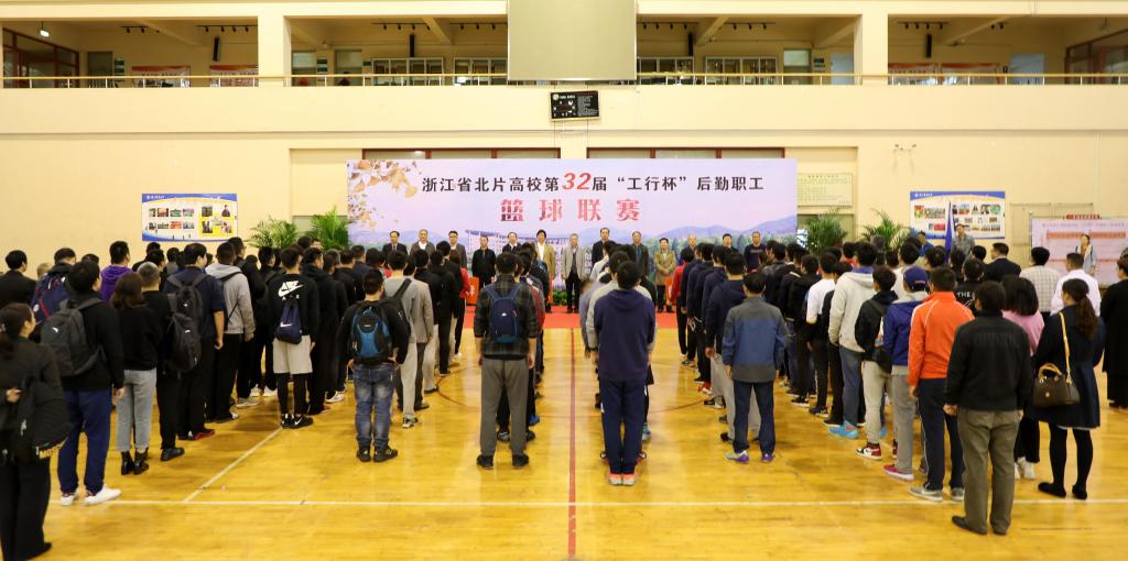 11月7日,浙江省北片高校第32届“工行杯”后勤职工篮球联赛开幕式在我校举行。副校长王自勇,浙江工业大学、浙江师范大学、杭州电子科技大学等高校相关负责人出席开幕式。各参赛队教练及队员、全体裁判员、集团全体经营班子成员参加。
