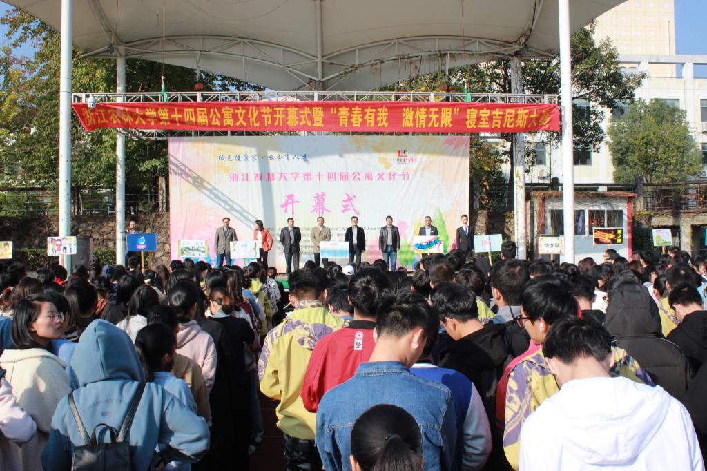 建管处处长郑本军宣布浙江农林大学第十四届公寓文化节开幕。