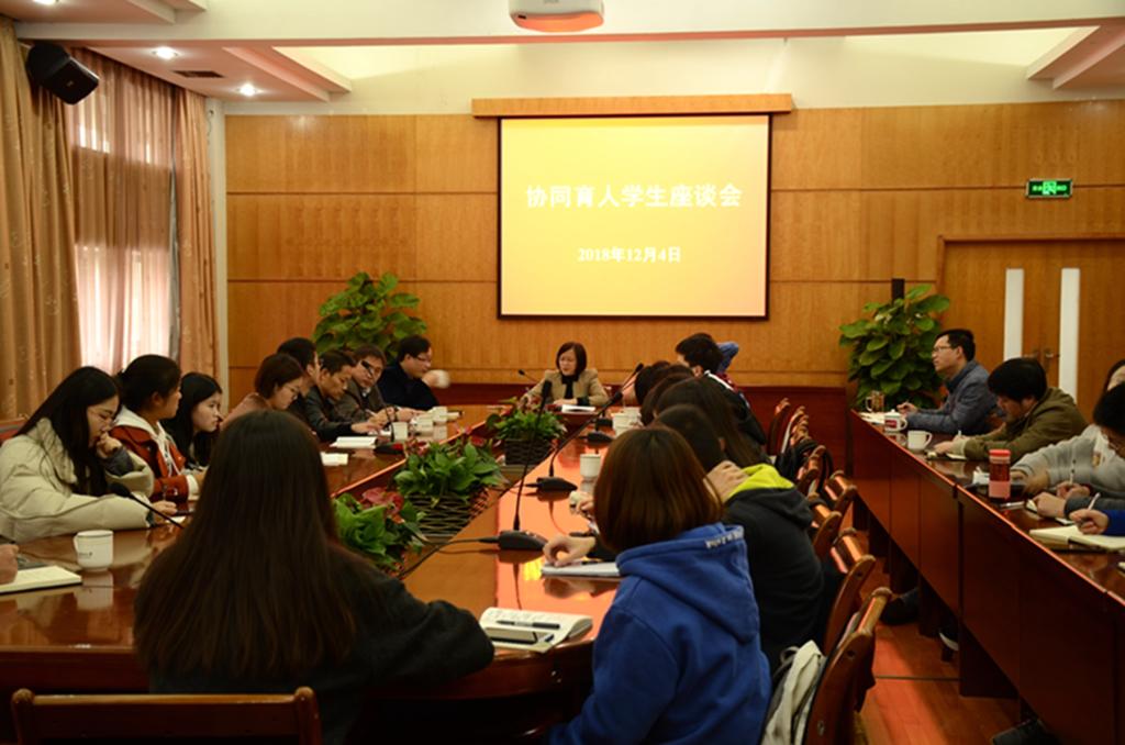 12月4日,学校召开了协同育人学生座谈会,倾听学生心声,了解协同育人项目专业学生学习情况,促进协同育人合作向纵深发展。来自4个学院15名学生代表参会,会议由副校长沈月琴主持。