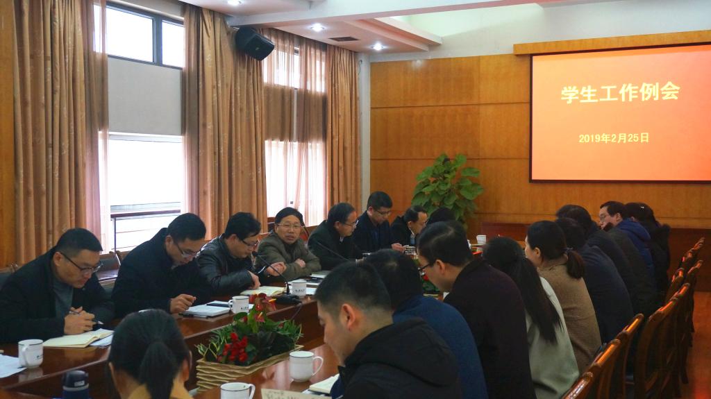 2月25日上午,学校召开学生工作例会,研讨部署新学期学生工作,会议由校党委副书记冯尚申主持。校党委委员、宣传部部长胡祖吉,学工部、研工部、保卫处、团委、后勤集团相关负责人及各学院分管学生工作负责人参加会议。