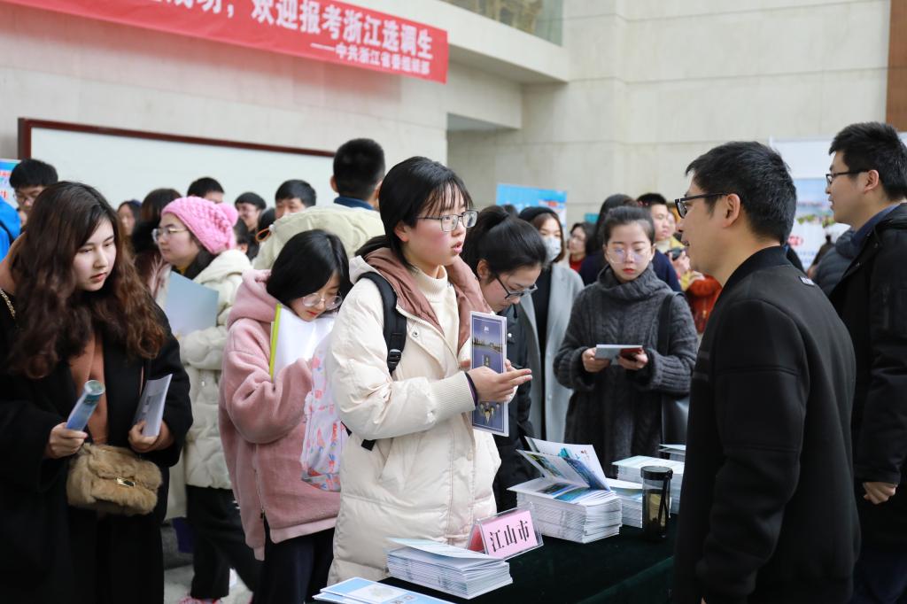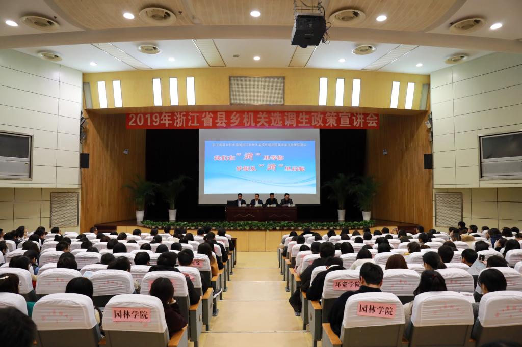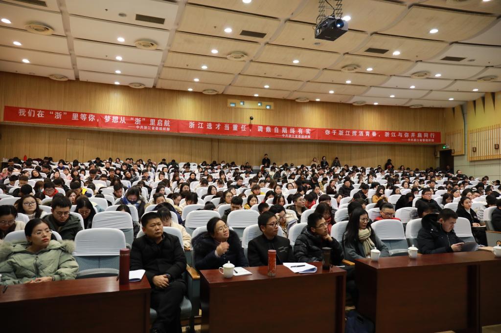 衢州市、杭州市、丽水市、温州市等地市、县(市、区)组织部工作人员来校推介。学生处、研究生院、各学院分管学生工作负责人、毕业班辅导员和我校500余名2019届毕业生代表参加本次宣讲会。