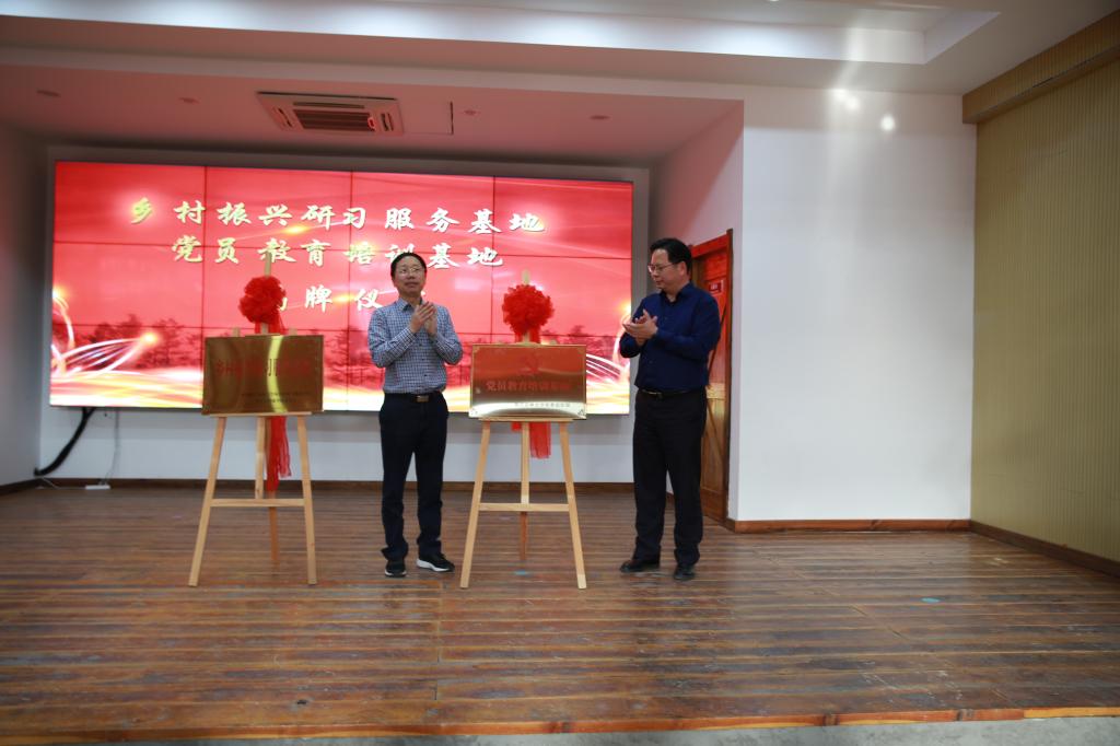 冯尚申、陈健分别为党员教育培训基地、乡村振兴研习服务基地揭牌。园林学院与禹越镇签署了乡村振兴校地合作协议。