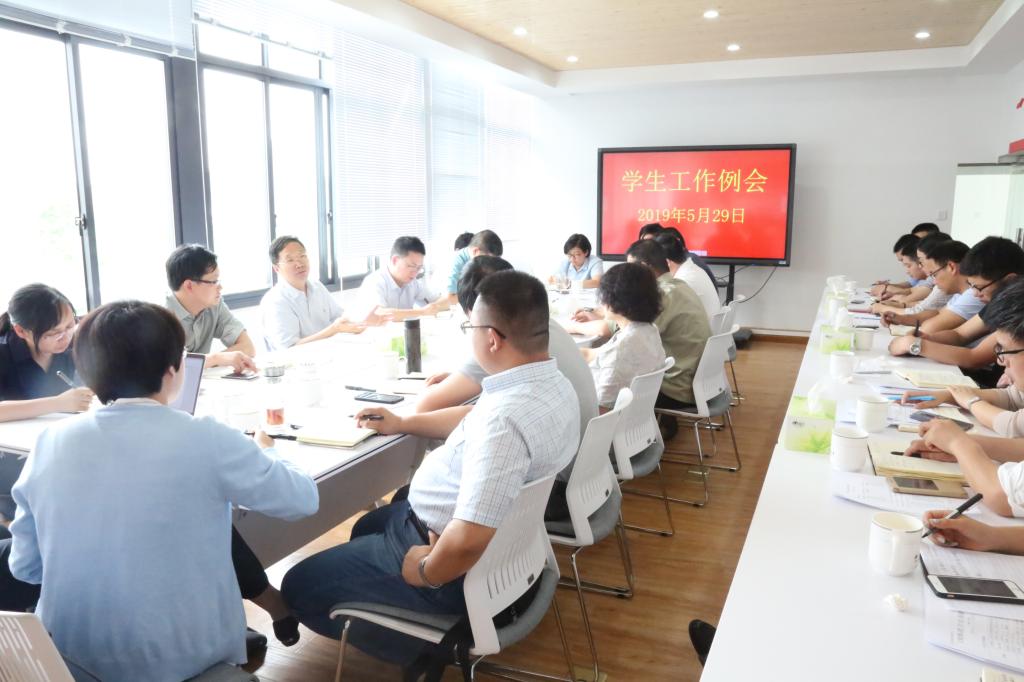 5月29日,学校召开学生工作例会,部署近期学生相关工作。会议由校党委副书记冯尚申主持。宣传部、学工部、研工部、保卫处、团委、后勤集团等部门负责人及各学院分管学生工作负责人参加会议。