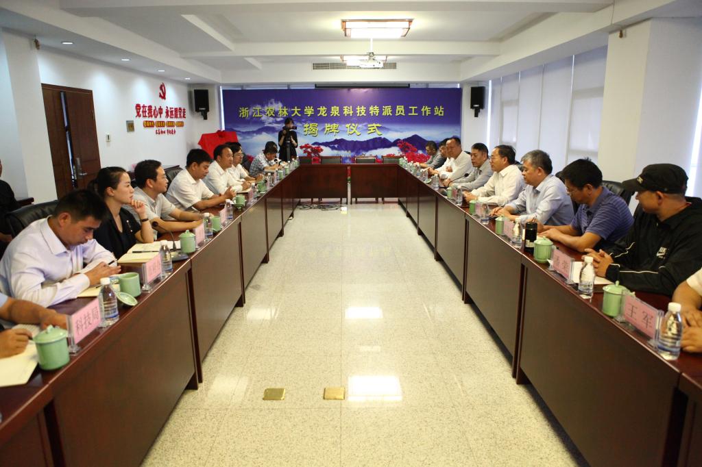 10月14日,浙江农林大学龙泉科技特派员工作站揭牌仪式在龙泉市产业创新服务中心举行。省委人才办专职副主任张旭明,校党委委员、副校长胡祖吉,龙泉市委副书记、市长吴松平,龙泉市副市长占雅静,丽水市委两新工委专职副书记练如库等为科技特派员工作站揭牌、科技特派员示范基地授牌,并颁发了工业科技特派员聘任书,见证、观看了合作项目签约及项目路演等。