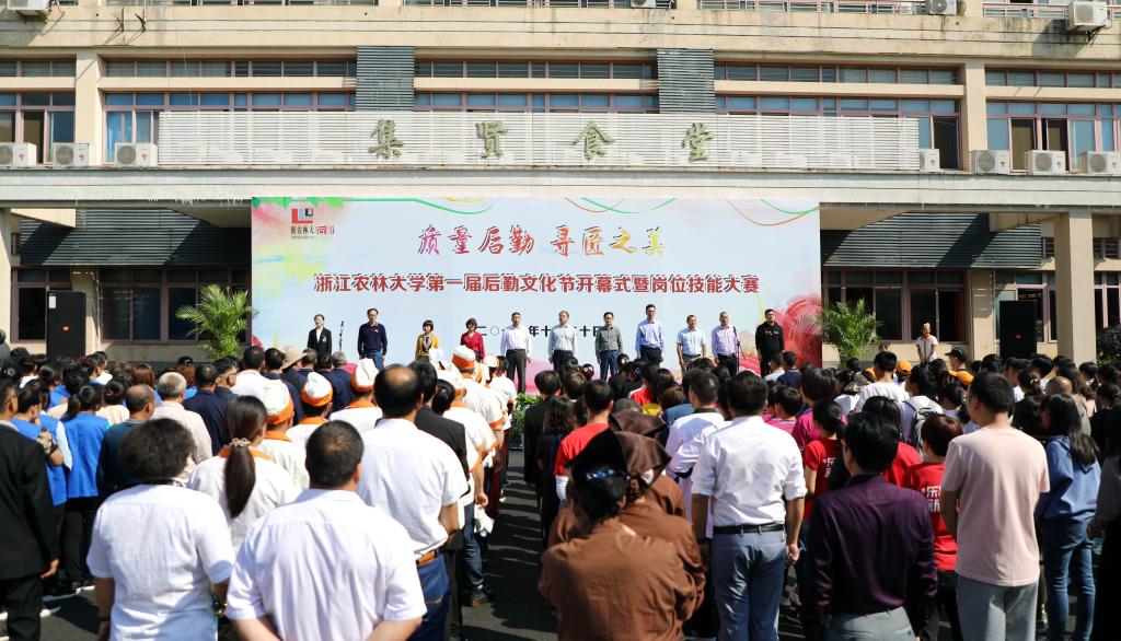 10月20日,以“质量后勤·寻匠之美”为主题的浙江农林大学第一届后勤文化节在东湖校区举行。副校长胡祖吉,宣传部常务副部长、学工部部长缪鲁加,建管处处长郑本军,校团委书记、农学院党委书记董杜斌,动科院党总支书记兼副院长谢志新出席开幕式。保卫处、校工会、校学生会相关负责人,后勤集团党政班子相关成员、中层干部、部门管理干部、各单位员工代表、学生代表等近200人参加活动。