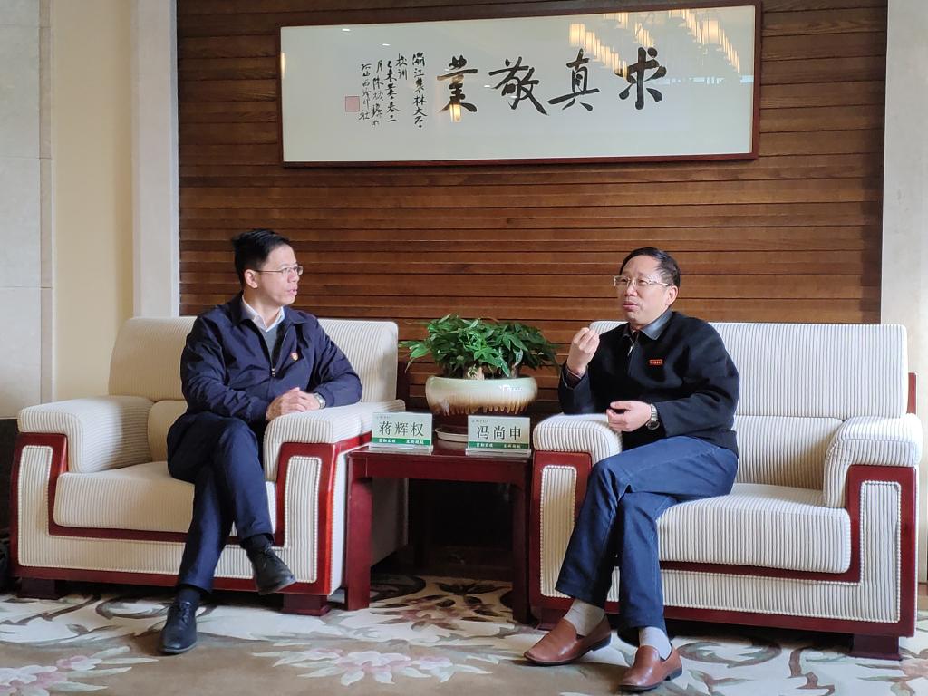 冯尚申对蒋辉权一行的到来表示欢迎,对杭州市七医院一直以来尤其是合作共建以来对我校大学生心理健康工作的支持表示感谢。他表示,新形势下我校大学生心理健康教育工作面对新的挑战,需要学校提高认识,加强研究,强化教育,提高意识,努力提升大学生心理素质和水平。同时这项工作也离不开市七医院的大力支持,希望校医双方今后进一步密切交流,深化合作,资源互补,为大学生心理健康保驾护航,共同促进大学生成长成才。