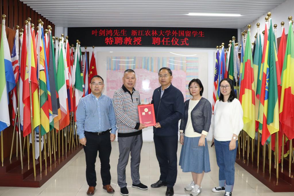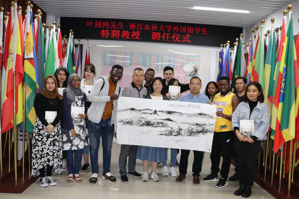 10月13日下午,国际教育学院举办授聘仪式,聘任著名书画家叶剑鸿先生为我校外国留学生“中国传统文化”特聘教授。副校长胡祖吉为叶剑鸿颁发了聘书。国教学院相关负责人和部分留学生代表出席了相关活动。
