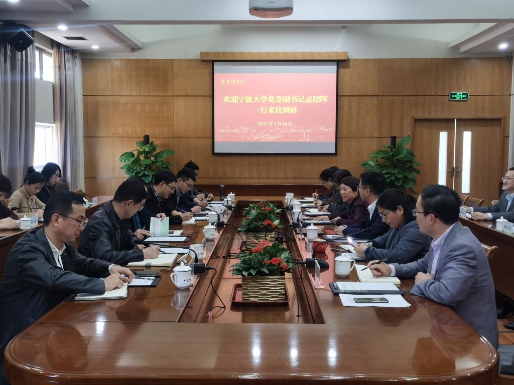 3月26日,宁波大学党委副书记童晓晖一行来我校调研交流,校党委副书记施美红参加座谈交流。
