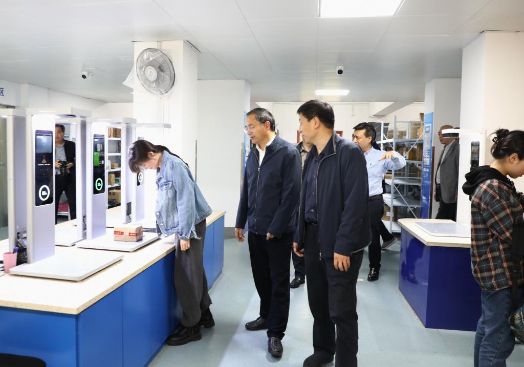 樊小东、郑锋一行参观了天猫超市、求真生活超市、C9菜鸟驿站、联建食堂等,调研了学校教育超市建设,对我校后勤服务工作呈现良好的发展态势给予赞赏,希望今后多加强沟通,多分享经验,共同促进学校后勤事业的发展。