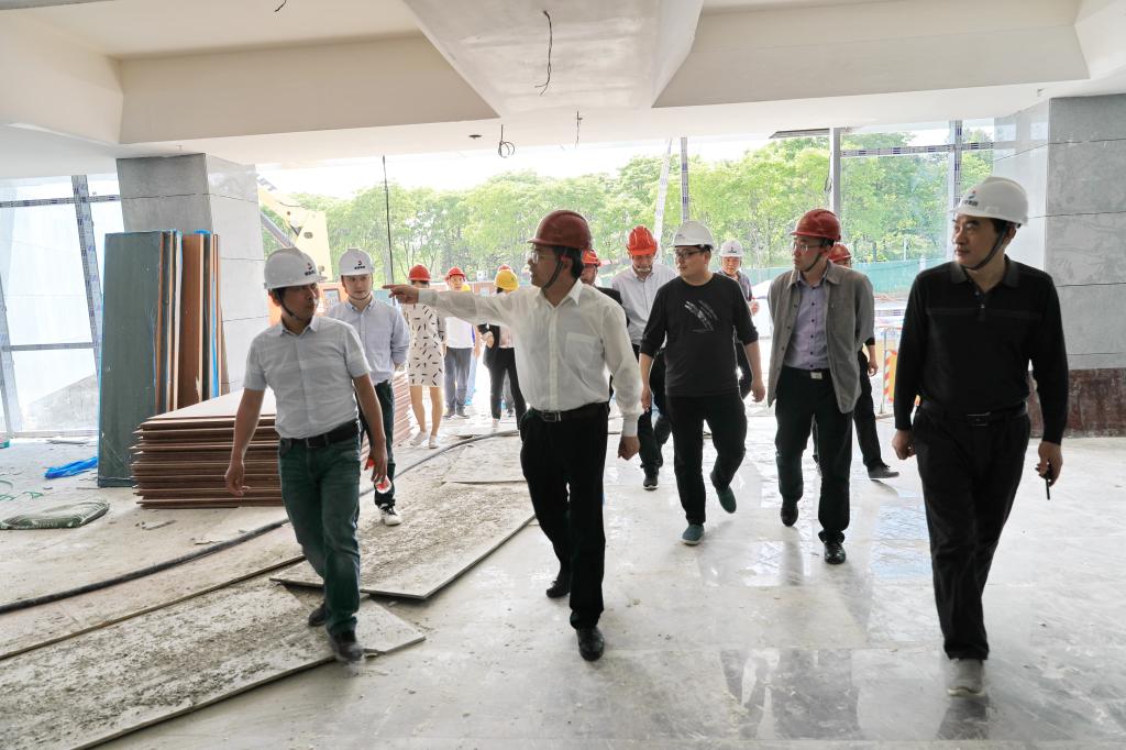 4月29日,副校长胡祖吉带领相关部门对校内在建工地开展节前安全生产专项检查,重点检查各个施工现场对重大危险源的管控,包括安全文明施工配置、基坑处理及防护、临边防护、临时用电等内容。