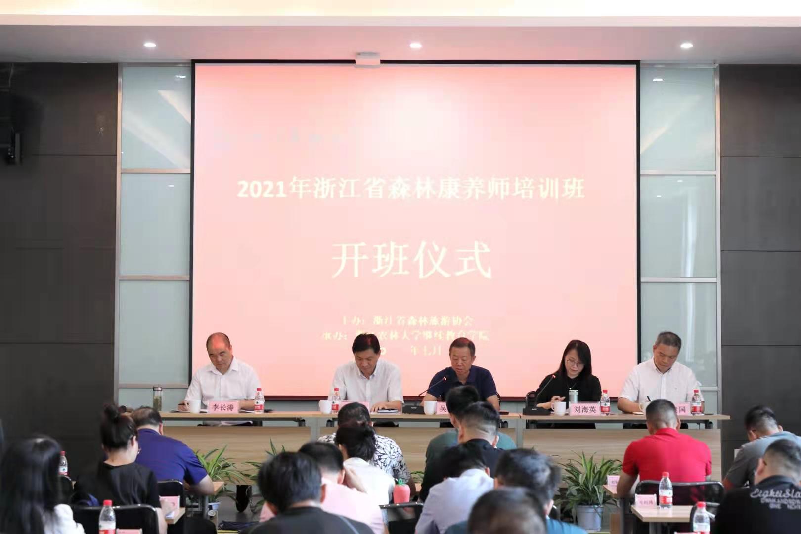 7月19日, 2021年浙江省森林康养师培训班在我校衣锦校区顺利开班。浙江省林业局党组成员、副局长陆献峰,林业改革和产业发展处副处长李长涛,副校长吴家胜,继续教育学院院长哀建国出席开班仪式,浙江省公益林和国有林场管理总站副站长刘海英主持开班式,来自浙江省森林康养基地的企事业单位、国有林场、省级以上森林公园选派人员共计60余人参加培训。