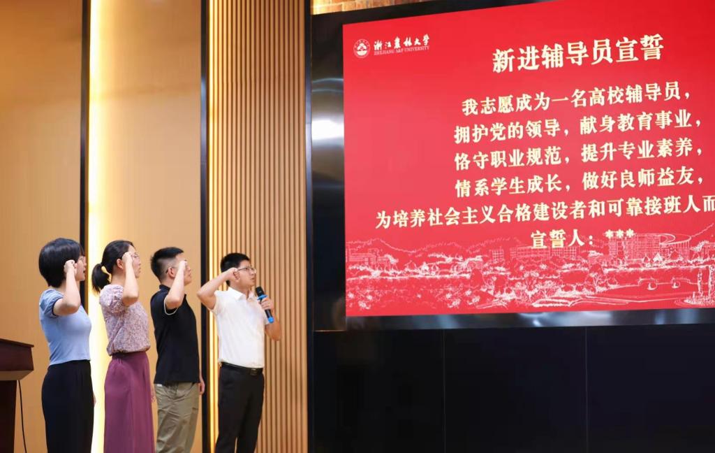 会议举行了“2021年新进辅导员入职仪式”和“兼职公寓辅导员聘任仪式”。