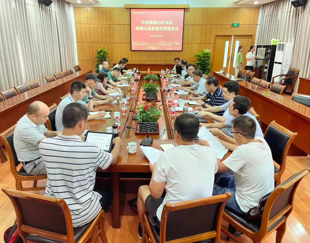 会上,文科处负责人传达了社科赋能山区26县跨越式高质量发展行动动员部署会精神,解读了《社科赋能山区26县跨越式高质量发展行动方案》。“生态价值转换机制”“农林产品营销”“生态产业振兴和山区县高质量发展”“碳达峰碳中和”及“乡村教育”等服务团队代表就各项目进展情况进行了汇报。与会人员进行了热烈的讨论。